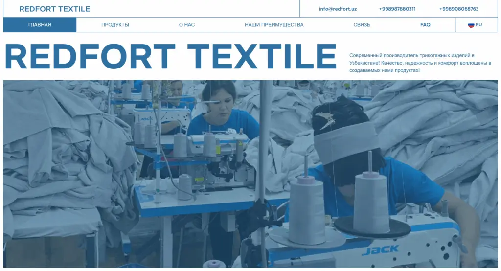 Redfort Textile O‘zbekistonning yirik trikotaj ishlab chiqaruvchilaridan biri. Kompaniya futbolka, polo, hoodie, sport kiyimlari va boshqa keng assortimentdagi mahsulotlarni ishlab chiqaradi. Jamoada 120+ xodim ishlaydi, ishlab chiqarish esa zamonaviy texnologiyalarga asoslangan.